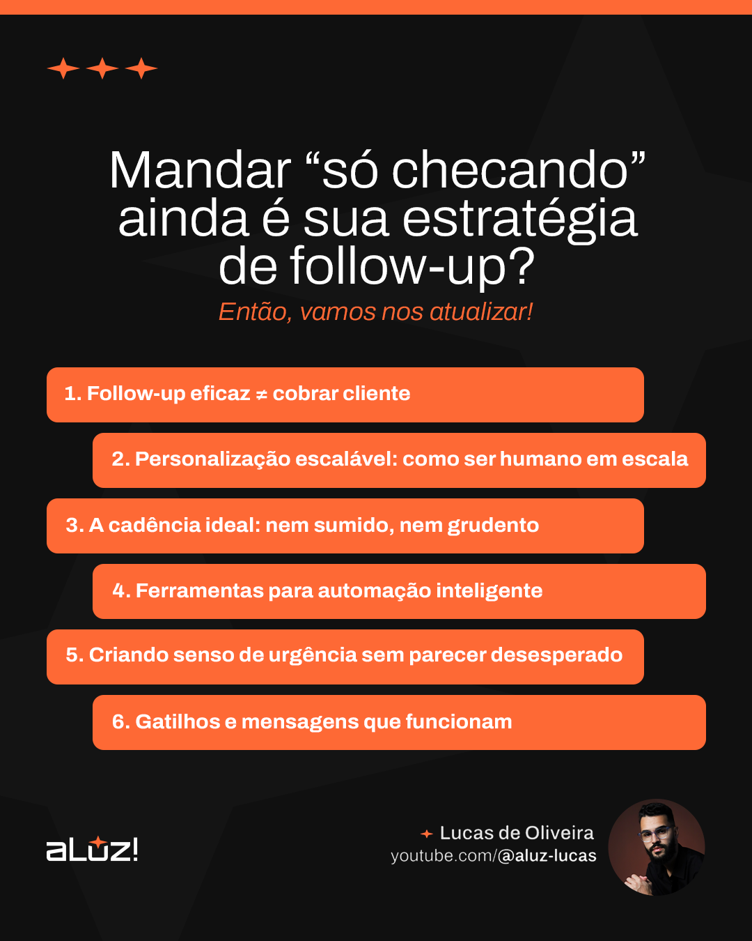 Quem faz follow-up com estratégia fecha mais. E mais rápido. Sua equipe precisa parar de apenas “lembrar o cliente” e começar a guiar a decisão de compra.